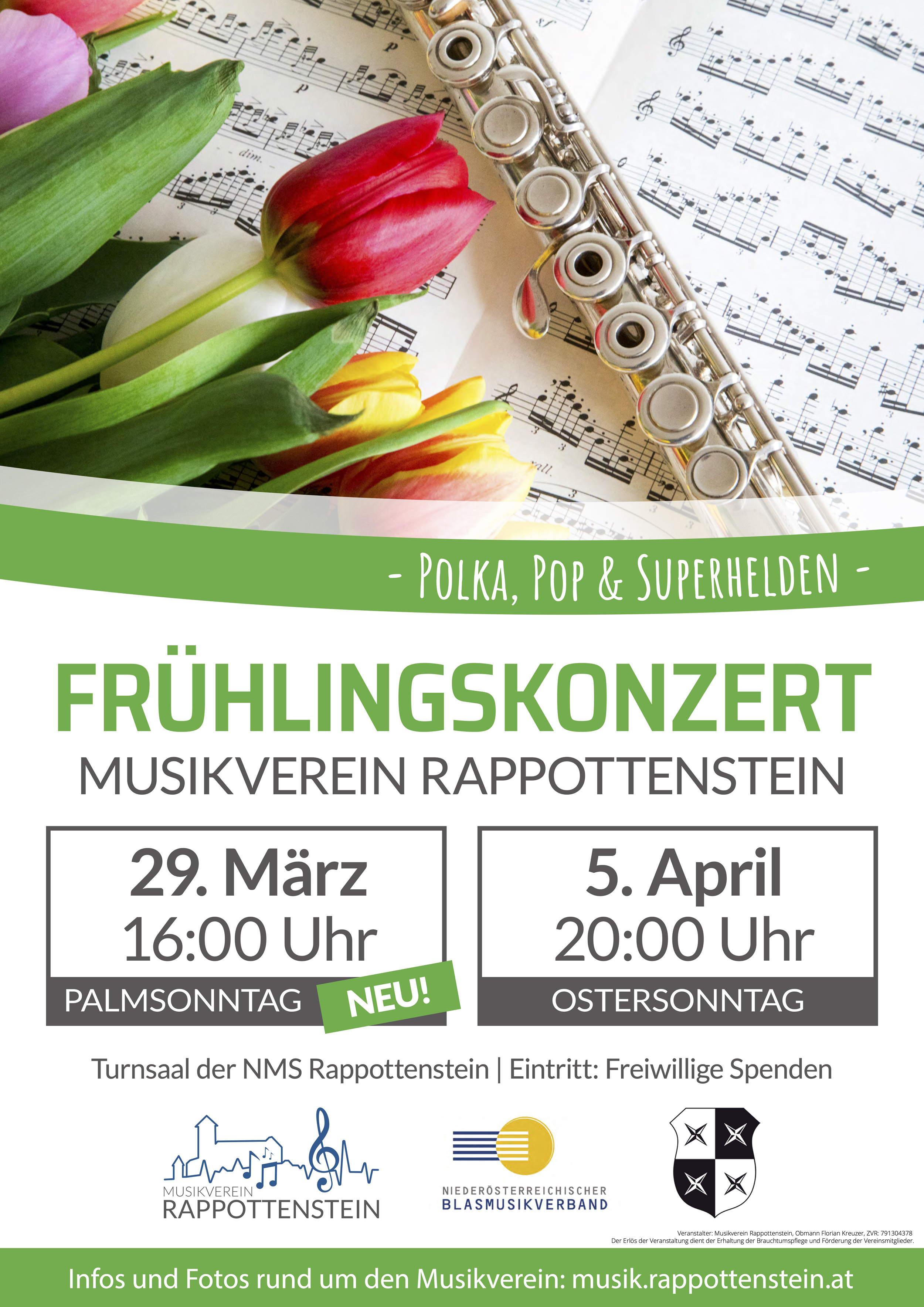 Das Frühlingskonzert steht unter dem Motto „Polka, Pop und Superhelden“ und findet an folgenden Terminen statt: